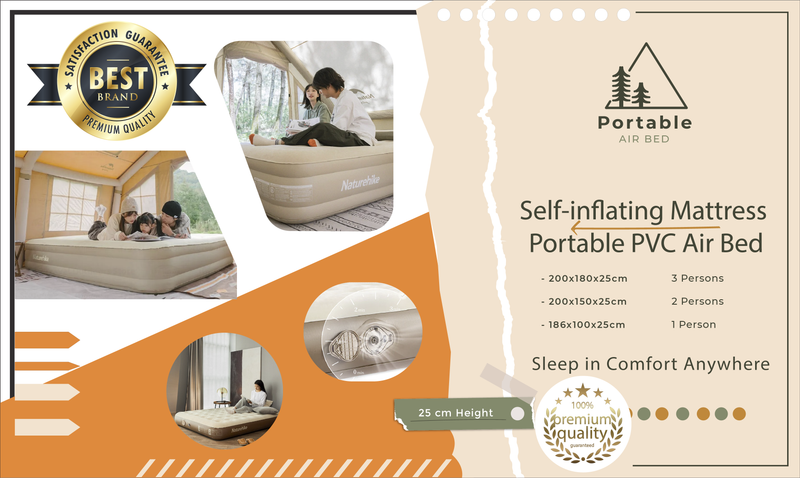 Portable PVC air bed with built-in pump for camping and tourism, 25CM height and self-Inflating