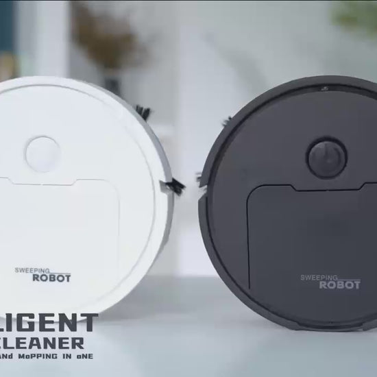 Intelligent robot cleaner for easy home and office use, with dry and wet cleaning options. Simple one-button operation, powerful suction, picking up hairs, dirt, and debris on hard floors. 1200mAh battery with USB charging, low noise levels, and a low profile design to fit under furniture. Ideal for hardwood, tile, laminate, and stone, with easy maintenance. Capacity: 1200mAh; Charge time: 4hrs; Working time: 90mins. Color: White/Black; Size: 19.5x19.5x5.5cm.