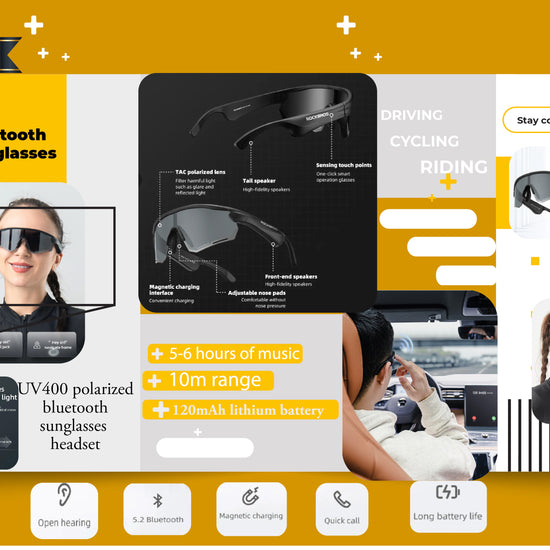 Stay connected, entertained, and protected with our UV400 polarized sunglasses headset. Featuring Bluetooth V5.2 with multiple protocols, audio decoding, and a 10m range, enjoy 5-6 hours of music or 5 hours of talk time on a single charge. Keep your eyes on the road and hands free with this ultimate driving, riding, and cycling accessory.